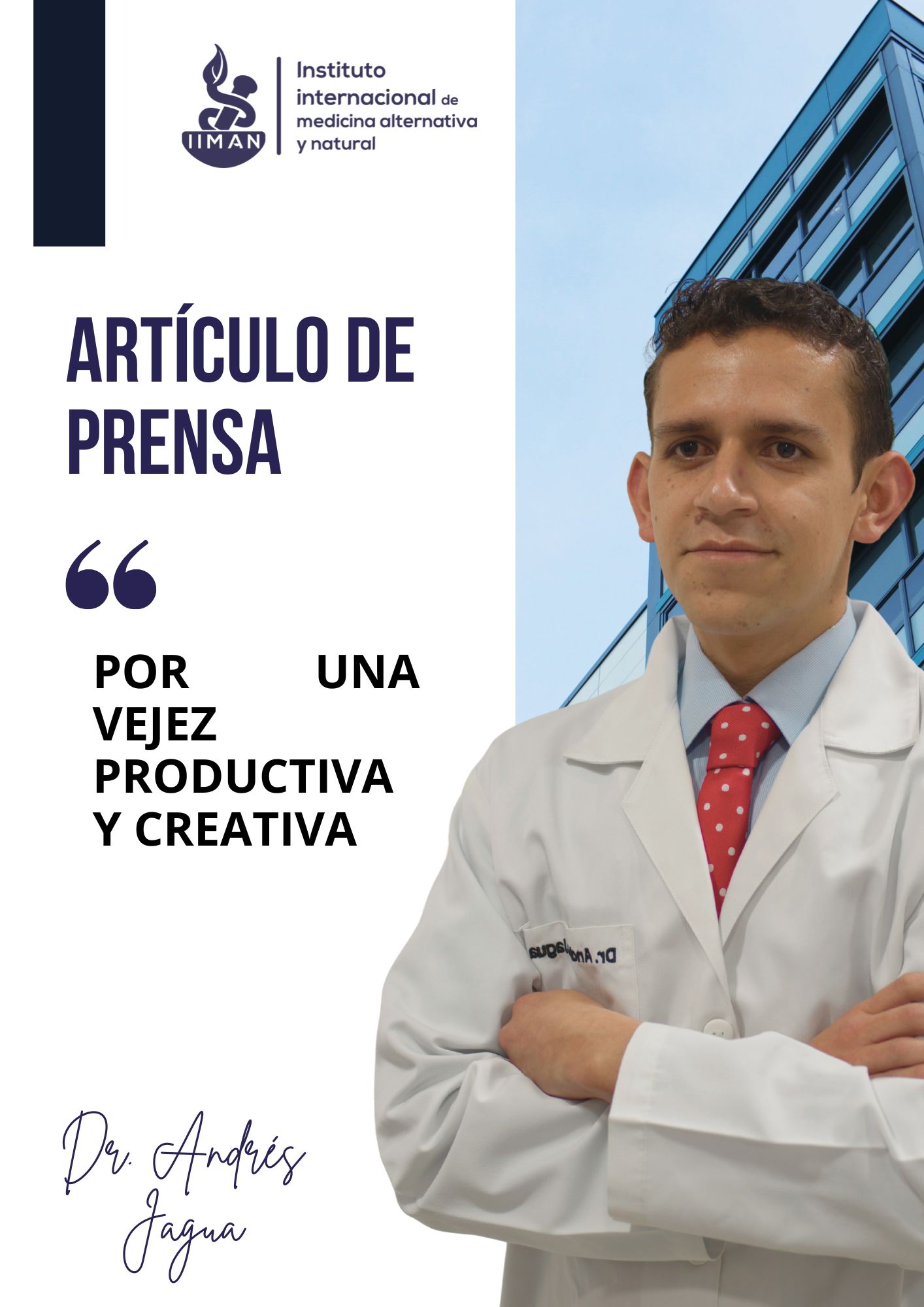 Con el aumento en la expectativa de vida, es posible vivir una vejez productiva y creativa si se prioriza una buena salud física, emocional y nutricional. El Dr. Andrés Jagua, director científico de IIMAN, promueve hábitos basados en evidencia para un envejecimiento saludable que permita mantener autonomía, bienestar y vínculos afectivos. Nuestros programas de formación y atención integral incluyen recomendaciones prácticas para mejorar la calidad de vida en esta etapa.